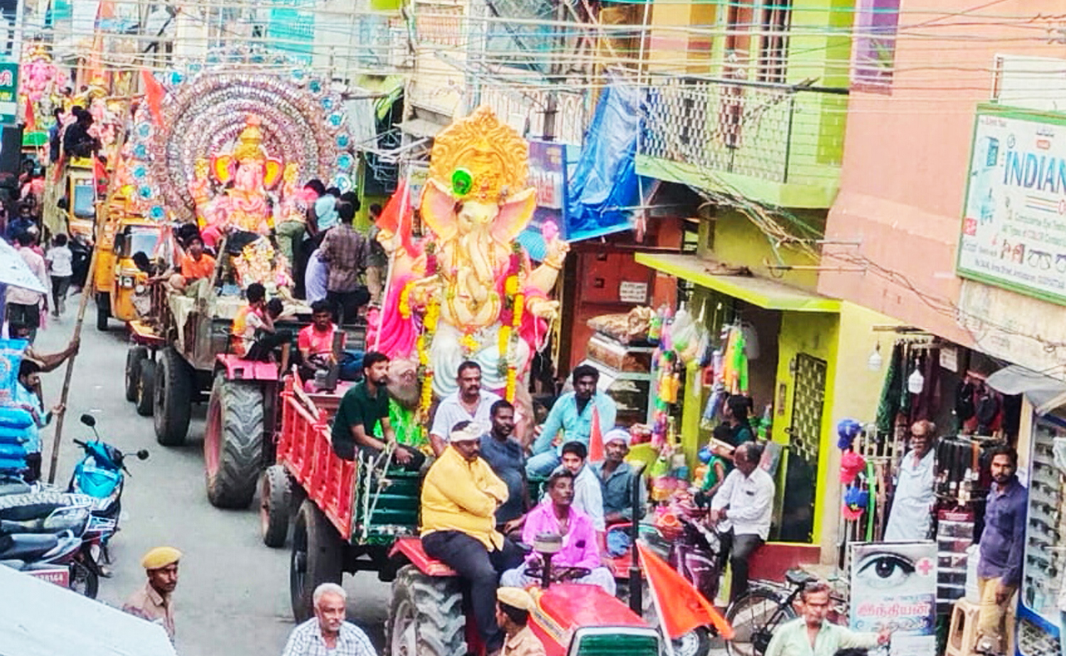 குடியாத்தத்தில் விநாயகர் சிலை ஊர்வலம் சென்ற காட்சி.