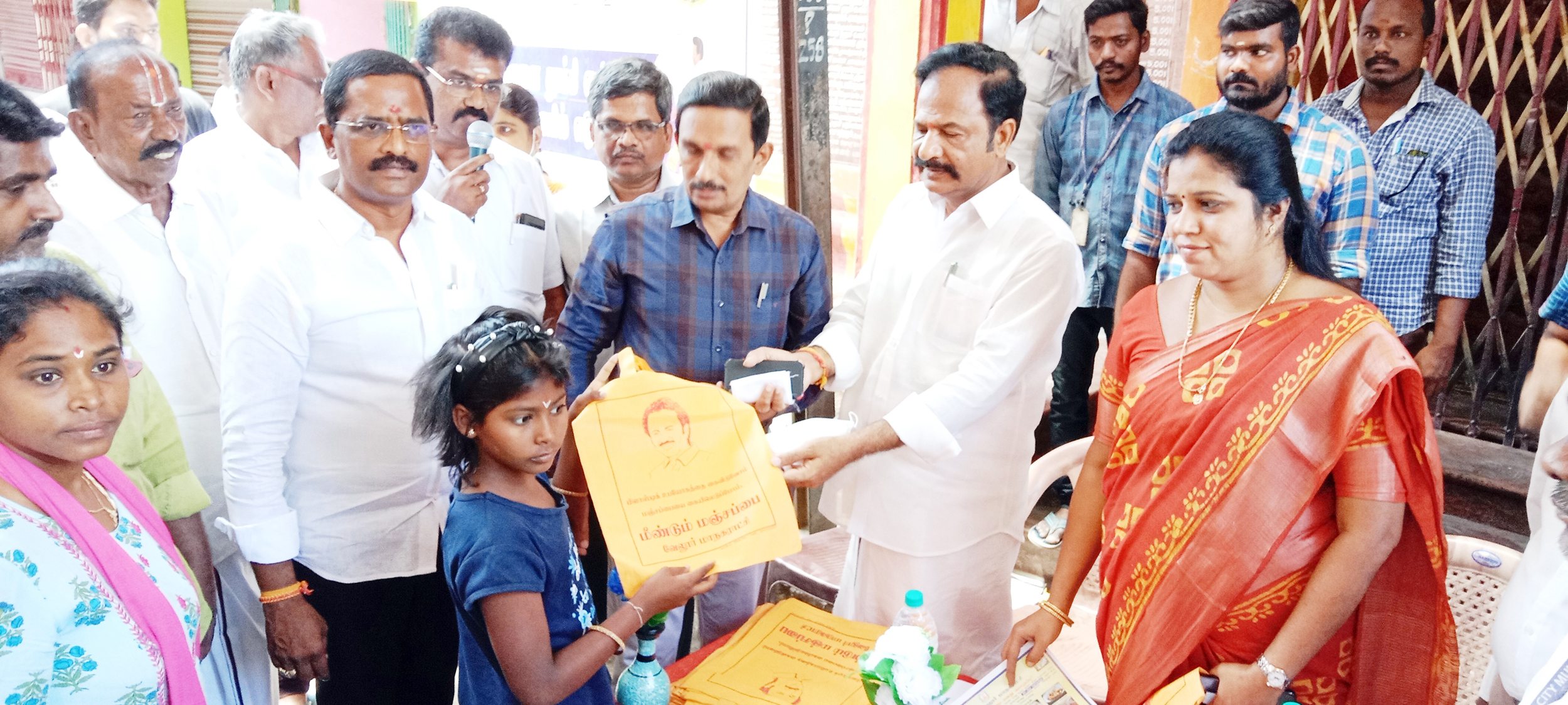 பொது மக்களுக்கு கார்த்திகேயன் எம்.எல்.ஏ. மஞ்சப்பை வழங்கினார்
