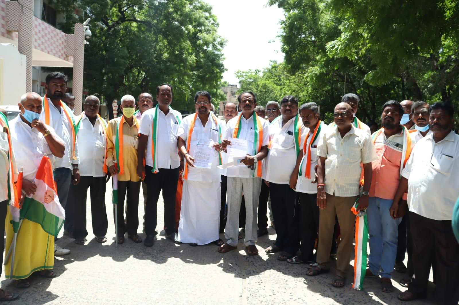 த.மா.க. மாநகர் மாவட்ட தலைவர் மூர்த்தி தலைமையில் வேலூர் கலெக்டர் அலுவலகத்தில் இன்று மனு அளிக்க வந்தனர்.