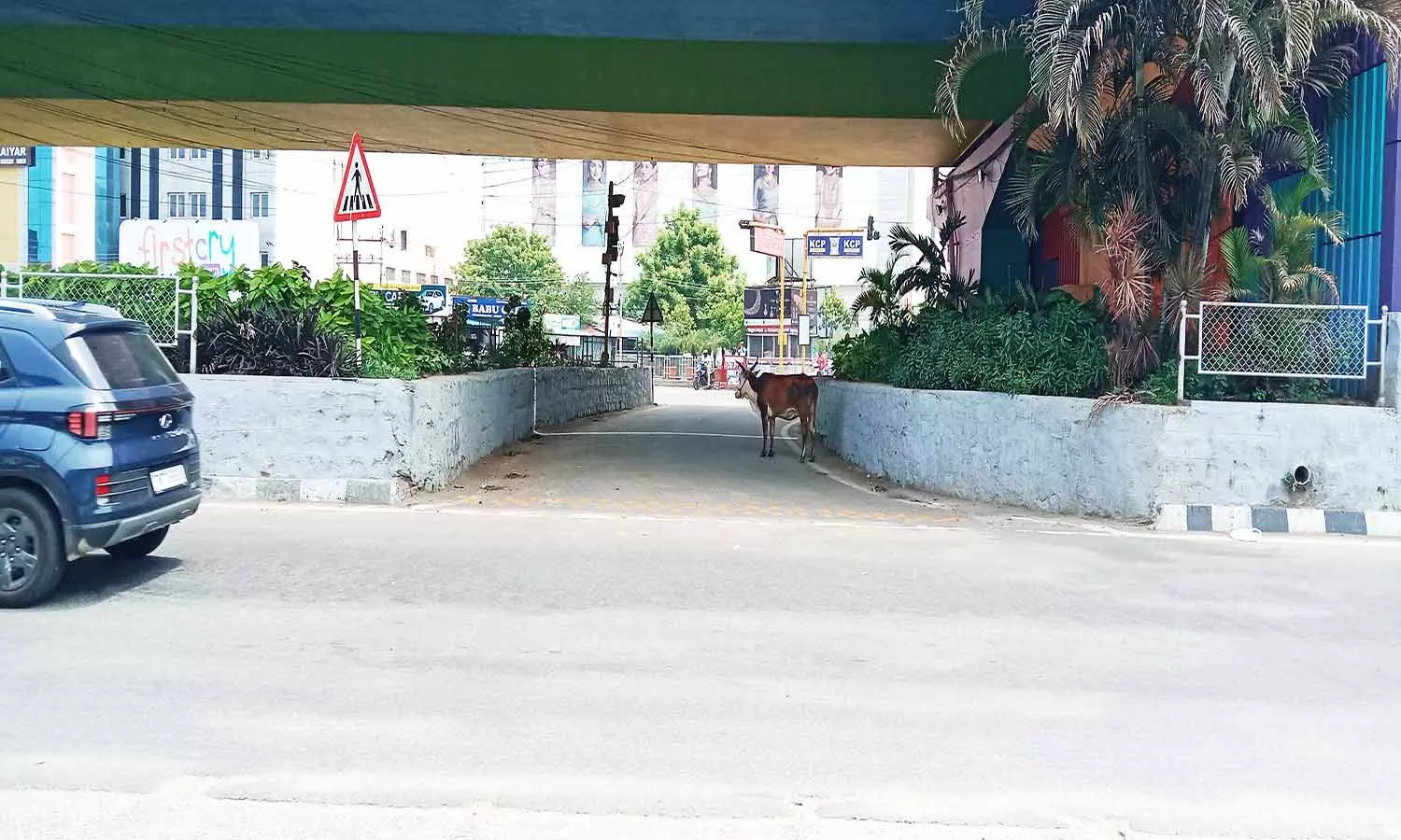 அந்த சாலை மாட்டு தொழுவமாக மாறியது. ஏராளமான மாடுகள் அதில் படுத்து கிடந்தன.
