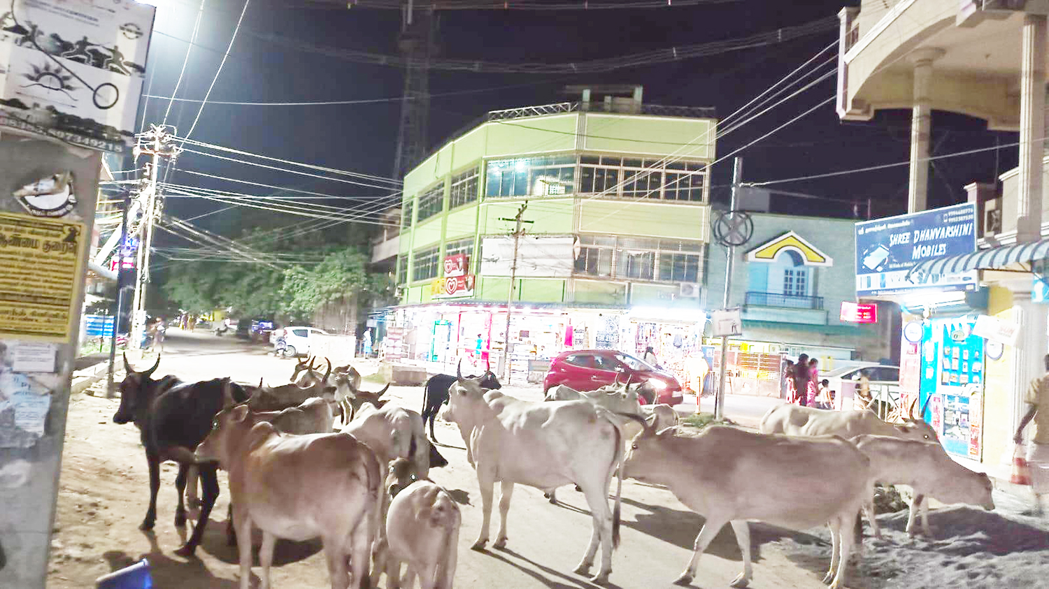 டபுள் ரோட்டில் குவிந்துள்ள மாடுகள்.