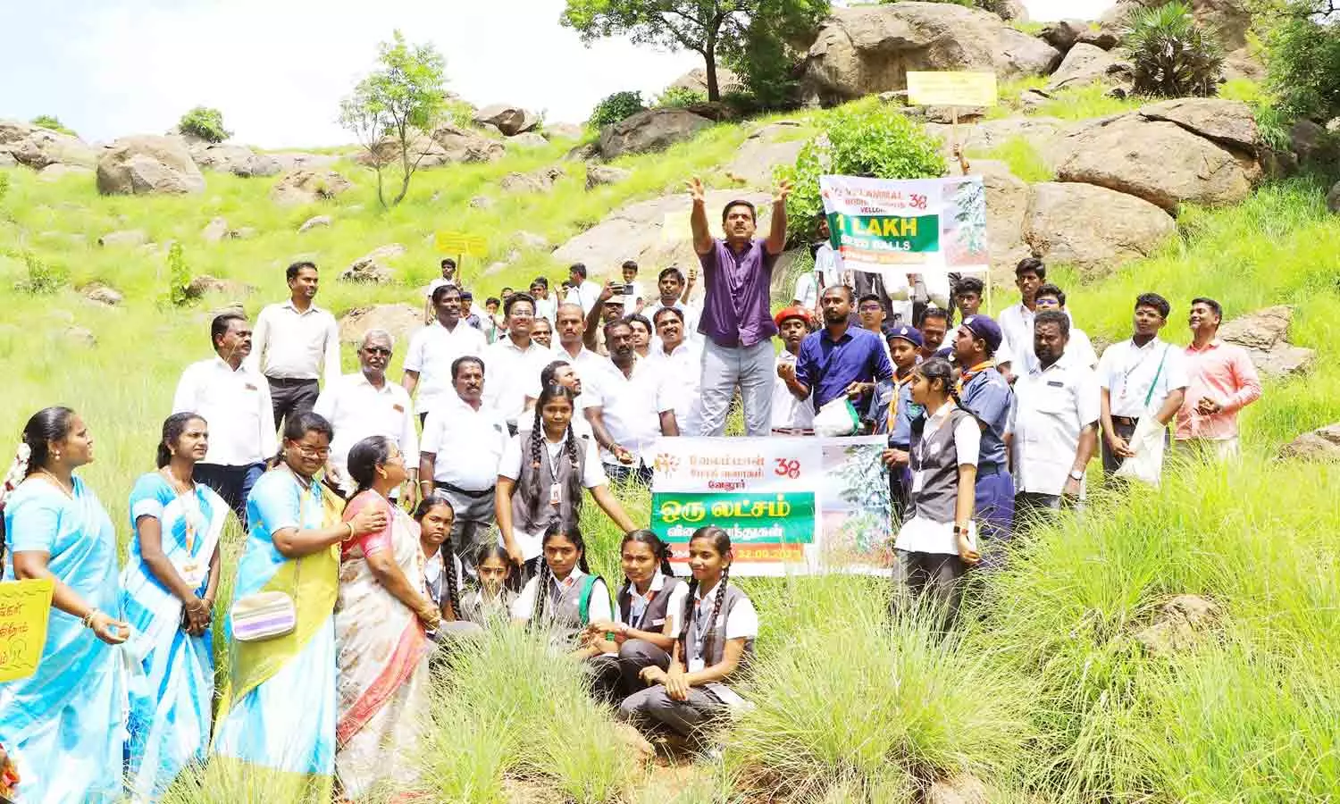 வேலூரை அடுத்த வெங்கடாபுரம் ஊராட்சியில் உள்ள தீர்த்தகிரி மலைபகுதியில் ஒரு லட்சம் விதைப்பந்துகள் தூவும் பணியினை இன்று கலெக்டர் குமாரவேல் பாண்டியன் தொடங்கி வைத்தார்.