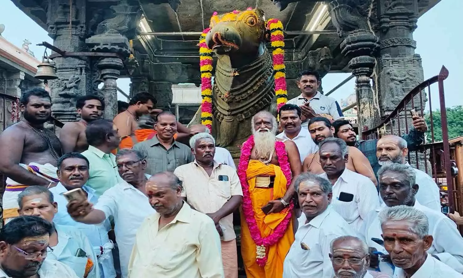 குருபூஜா விழாக்குழுவின் தலைவர் ஜி.விஸ்வநாதன் செய்தித் தொடர்பாளர் செ.நா.ஜனார்த்தனன், அபிஷேக உபயதாரர்கள் பங்கேற்றனர்.