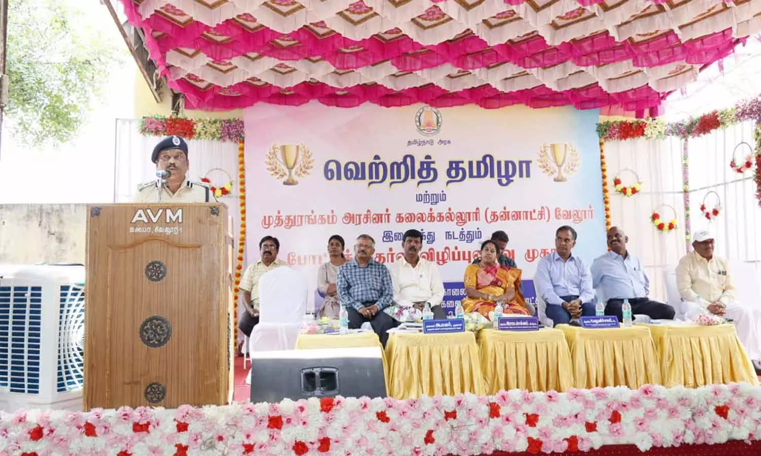 வேலூர் முத்துரங்கம் அரசு கலை மற்றும் அறிவியல் கல்லூரியில் வெற்றி தமிழா என்ற தலைப்பில் போட்டி தேர்வு குறித்து விழிப்புணர்வு நிகழ்ச்சி இன்று நடந்தது.