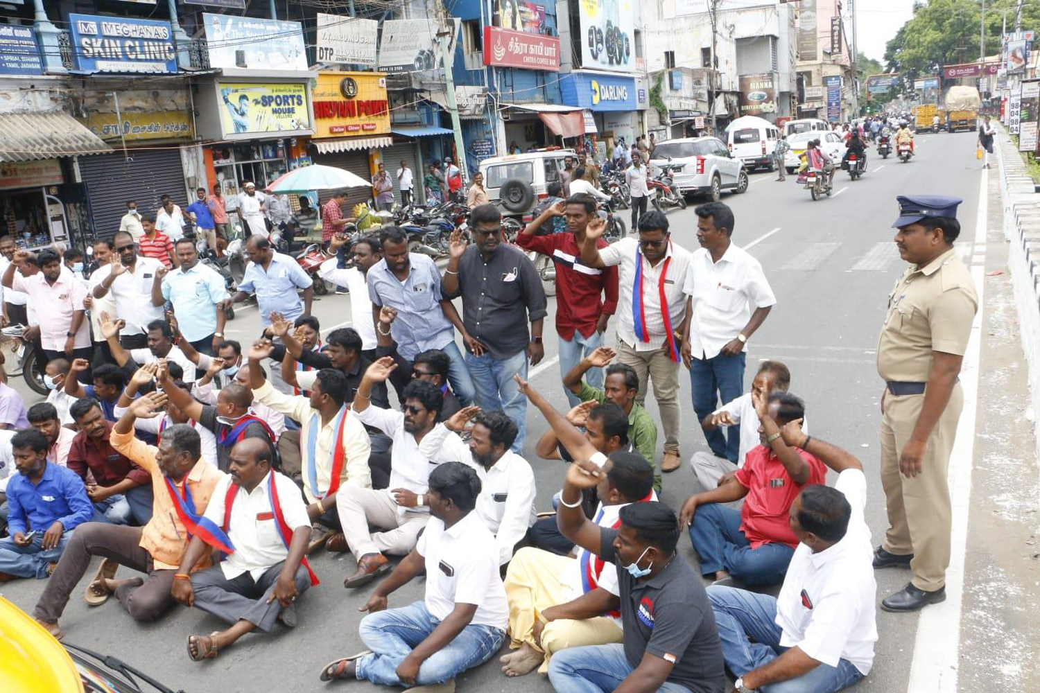 விடுதலை சிறுத்தைகள் கட்சியினர் மறியல் செய்த காட்சி.