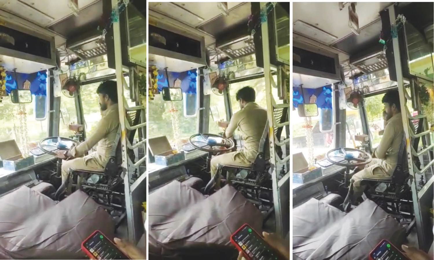 சில சமயம் ஸ்டேரிங்கை விட்டுவிட்டு அவர் செய்த ரகளை, பஸ்சில் இருந்த பயணிகளை அச்சத்தில் உறைய செய்தது. இதுகுறித்து பயணிகள் டிரைவரிடம் சென்று கேட்டபோது, அவர் முறையான பதில் அளிக்கவில்லை எனவும் கூறப்படுகிறது.