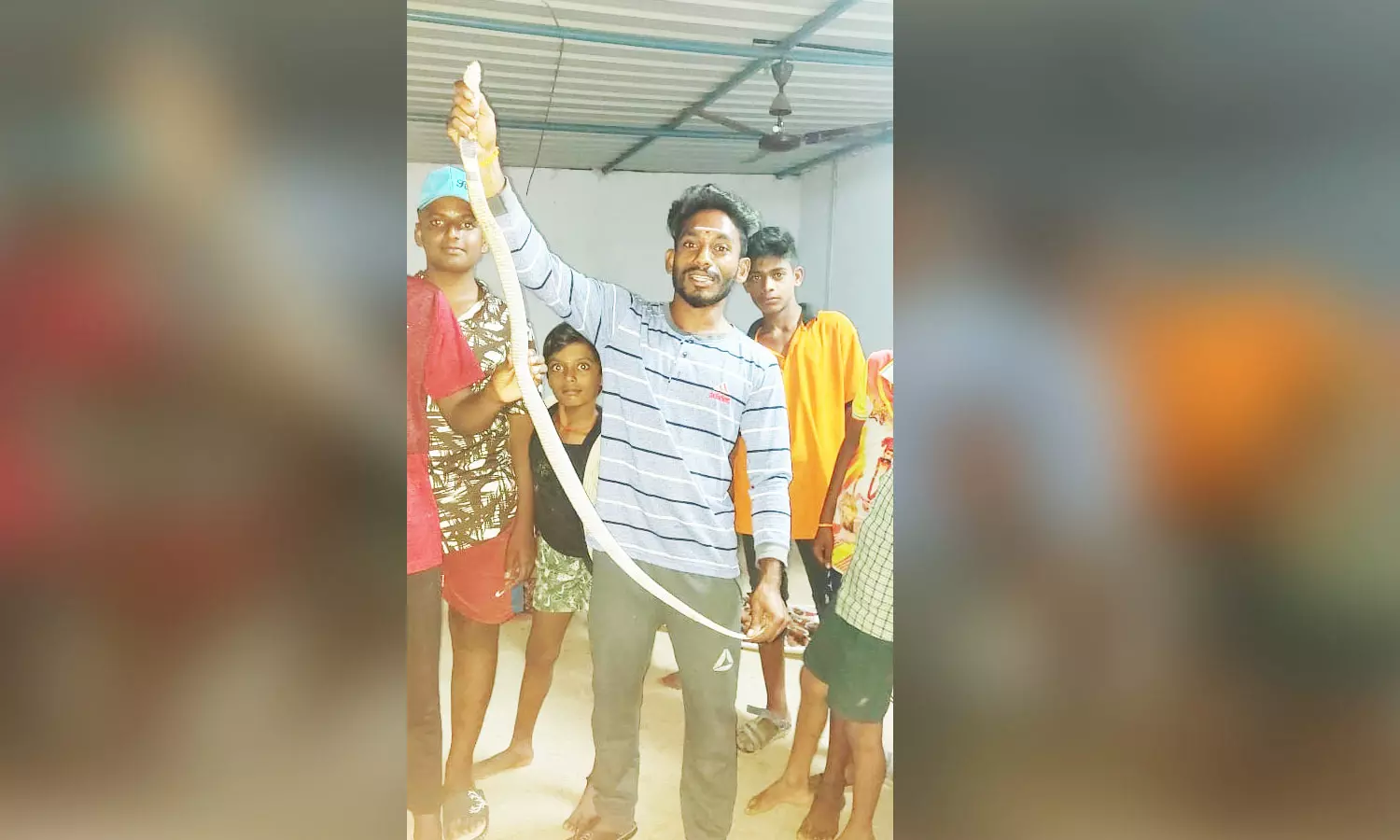 வீட்டில் புகுந்த பாம்பை பிடித்த இளைஞர்கள்