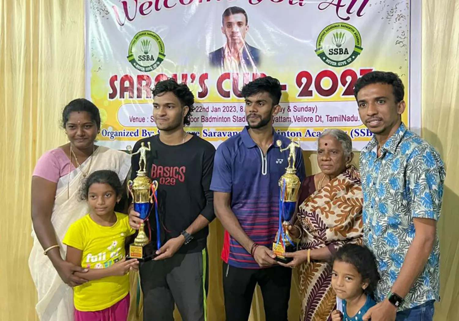 குடியாத்தம் அடுத்த நத்தம் பகுதியில் உள்ள சாய் பிரண்ட்ஸ் கிளப் உள் விளையாட்டு அரங்கில் சிங்கப்பூர் சரவணன் பேட்மிண்டன் அகடமி சார்பில் அகில இந்திய அளவிலான இரட்டையர்கள் பேட்மிண்டன் போட்டிகள் 2 நாட்கள் நடைபெற்றது.