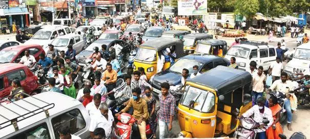 - 5 கி.மீ. தூரம் வாகனங்கள் அணிவகுத்து நின்றன