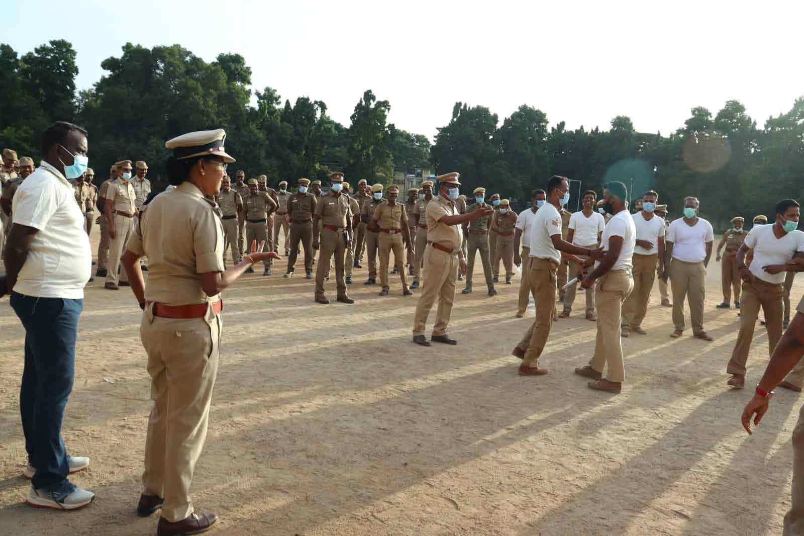 பொதுக்கூட்டம், ஆர்ப்பாட்டத்தில் ஏற்படும் கலவரங்களை தடுப்பது குறித்து கராத்தே வகுப்பு பயிற்சி ஆசிரியர்களை கொண்டு பயிற்சி அளித்தனர்.