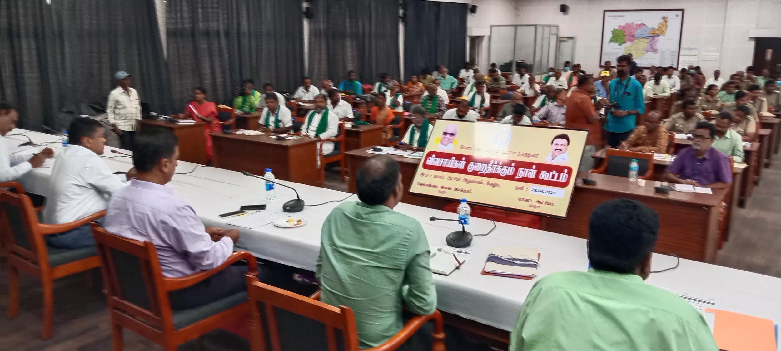 கலெக்டர் குமார் வேல் பாண்டியன் தலைமையில் விவசாயிகள் குறை தீர்வு கூட்டம் நடந்த காட்சி