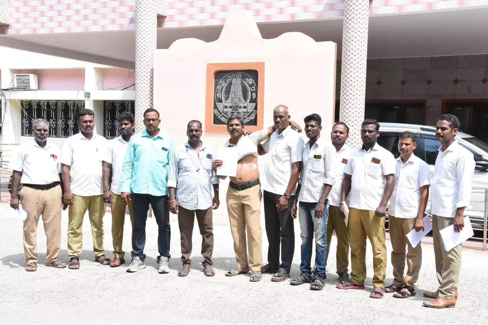 வேலூர் சிறார் சீர்திருத்த பள்ளி வார்டன்கள் கலெக்டர் அலுவலகத்தில் மனு அளிக்க வந்த காட்சி.
