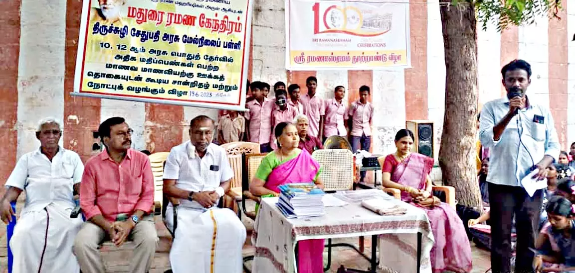 திருச்சுழி சேதுபதி அரசு பள்ளியில் மதுரை ரமணகேந்திரம் சார்பாக மாணவ-மாணவிகளுக்கு இலவச நோட்டுப்புத்தகங்கள் வழங்கும் விழா நடந்தது. தலைமையாசிரியர் சம்பத்குமார் தலைமை தாங்கினார். 10,12-ம் வகுப்பில் மதிப்பெண் பெற்ற மாணவ-மாணவிகளுக்கு ஊக்கத்தொகை, நோட்டுப்புத்தகங்கள் வழங்கப்பட்டன.