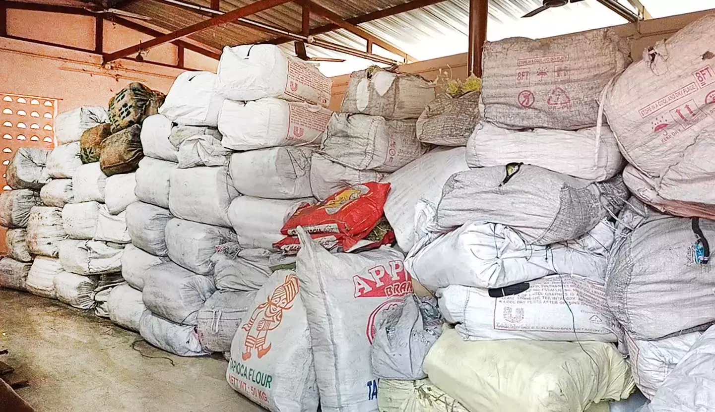 பறிமுதல் செய்யப்பட்ட பட்டாசு கருந்திரி மூடைகள்.