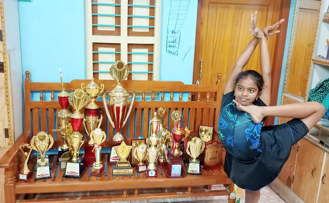 யோகாவில் பரிசுகளை குவித்து வரும் மாணவி ஜெயவர்தினி.