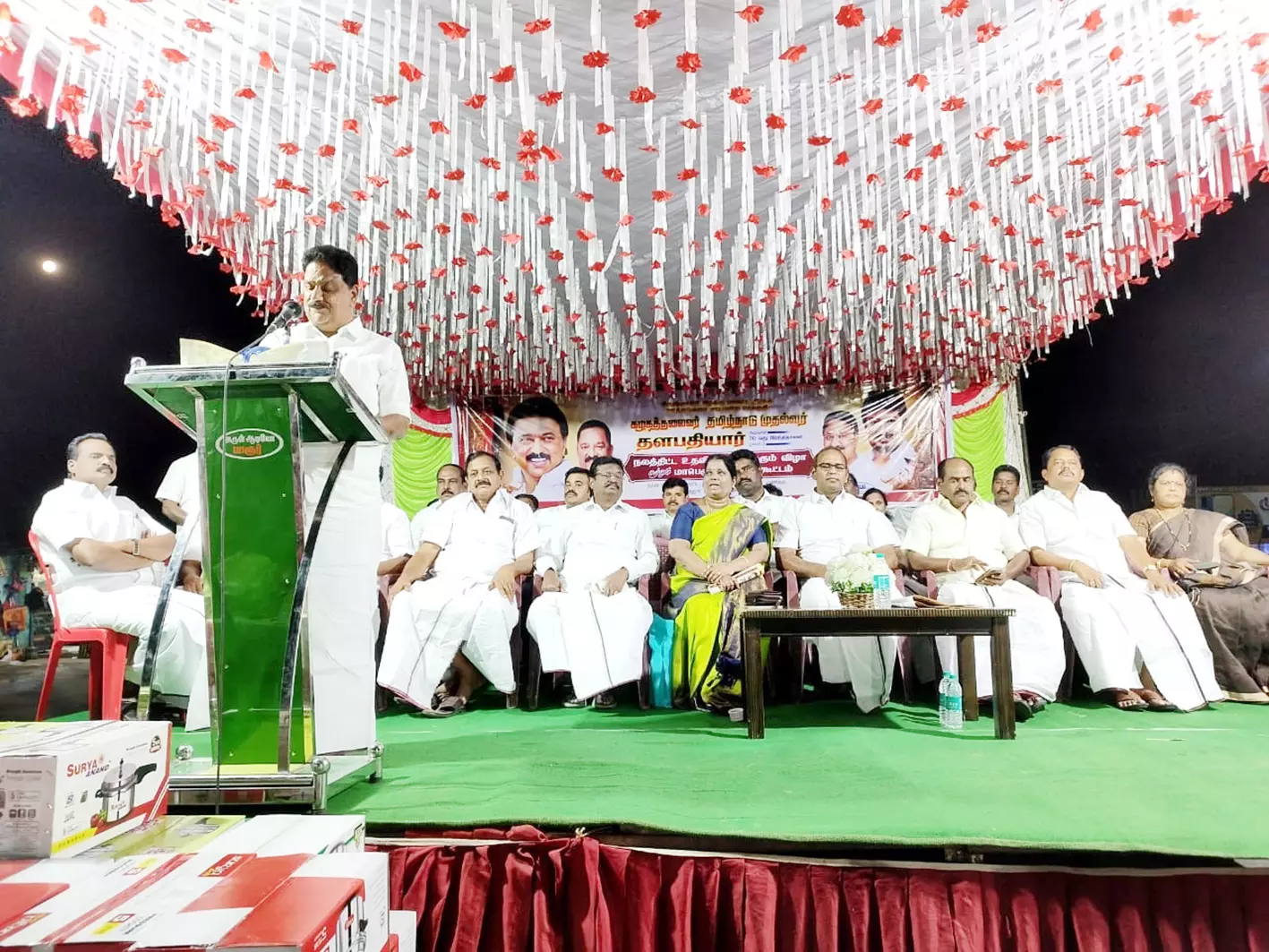 - பர்கூர் தொகுதி சட்டமன்ற உறுப்பினருமான மதியழகன் சிறப்புரையாற்றி பொதுமக்களுக்கு நலதிட்டங்களை வழங்கினார்.