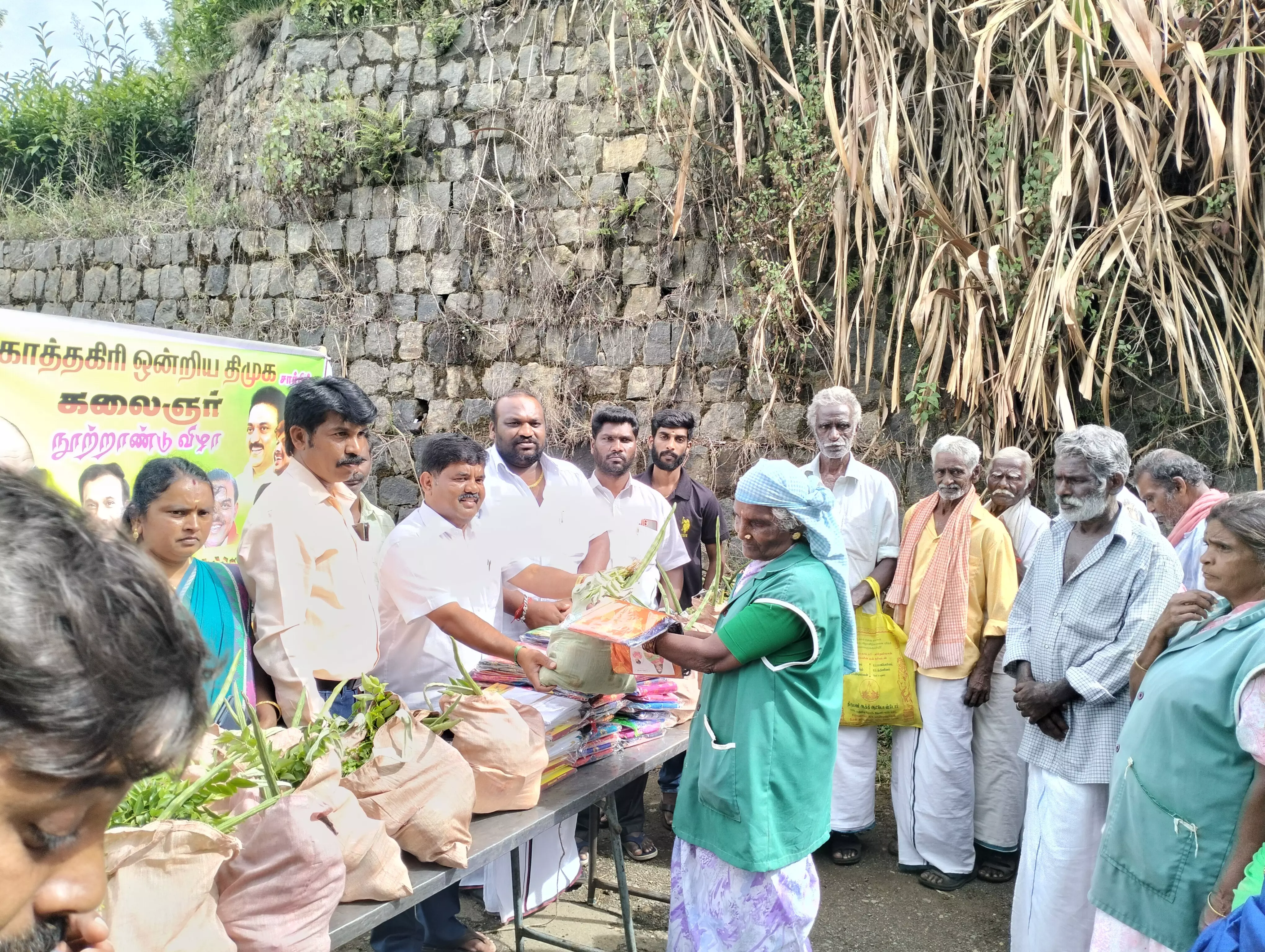 கோத்தகிரி ஊராட்சி ஒன்றியத்திற்குட்பட்ட கெணவுகரை ஊராட்சி கொட்டக்கம்பை, முல்லை நகர், அனந்தகிரி, பாட்டி மட்டம் பகுதிகளில் உள்ள தேயிலை தோட்ட பணியாளர்கள் மற்றும் கெணவுக்கரை ஊராட்சி மன்ற தூய்மை பணியாளர்களுக்கு கலைஞரின் நூற்றாண்டு பிறந்தநாள் விழாவை முன்னிட்டு சேலை- வேட்டி மற்றும் மளிகை தொகுப்புகள் வழங்கப்பட்டது. நிகழ்ச்சிக்கு கெணவுகரை ஊராட்சி மன்ற தலைவர் ஜெயப்பிரியா ஹரிஹரன் தலைமை தாங்கி தூய்மை பணியாளர்கள் மற்றும் தேயிலை தோட்ட பணியாளர்களுக்கு நலத்திட்ட உதவிகளை வழங்கினார். கோத்தகிரி ஒன்றிய செயலாளர் நெல்லை கண்ணன், ஊராட்சி ஒன்றிய தலைவர் ராம்குமார் ஆகியோர் முன்னிலை வகித்தனர். நிகழ்ச்சியில் கோத்தகிரி ஒன்றிய தி.மு.க. துணை செயலாளர் கணபதி, ராஜேந்திரன் மற்றும் தேயிலை தோட்ட தொழிலாளர்கள், தூய்மைப்பணி யாளர்கள் உட்பட பலர் கலந்து கொண்டனர்.