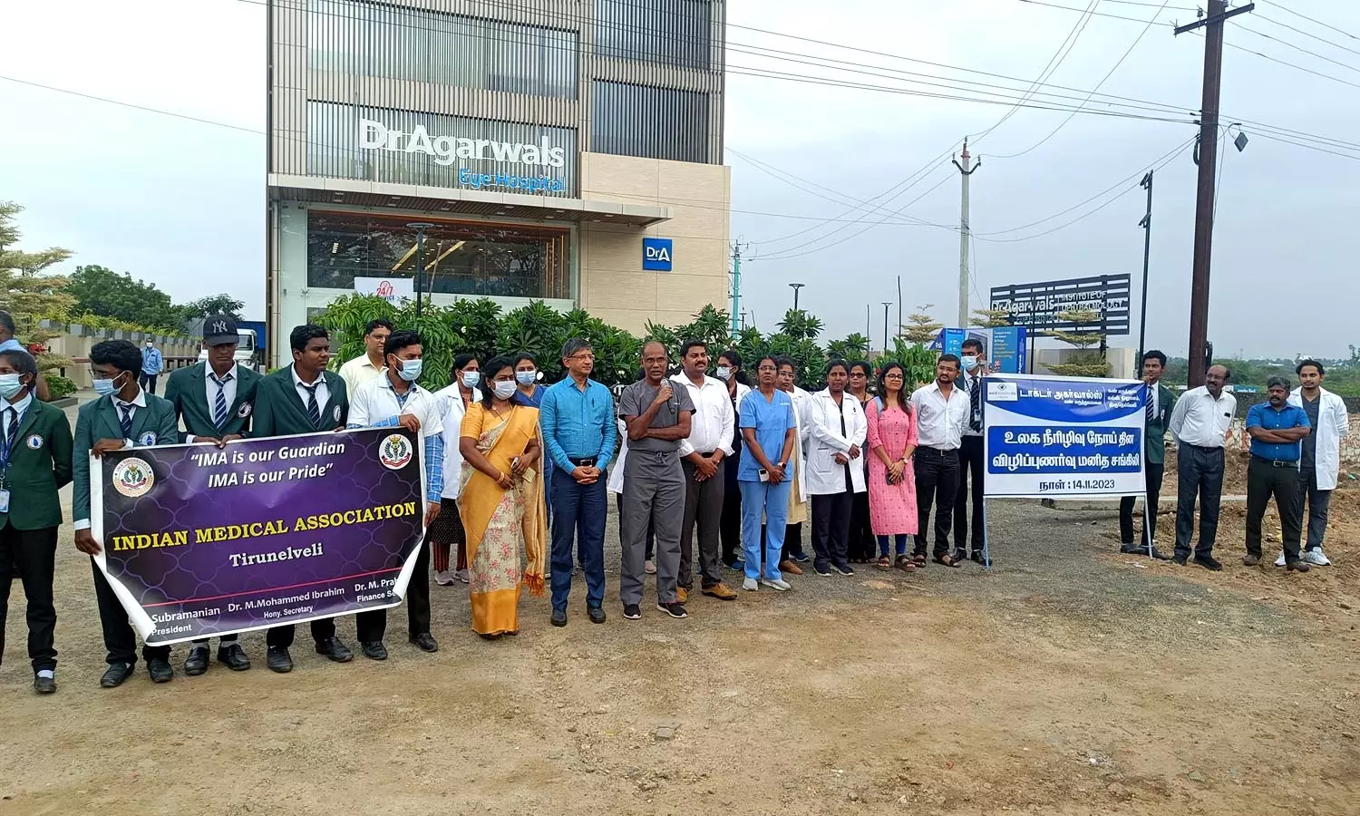 டாக்டர் அகர்வால் கண் மருத்துவமனையில் உலக நீரழிவு நோய் விழிப்புணர்வு மனித சங்கிலி
