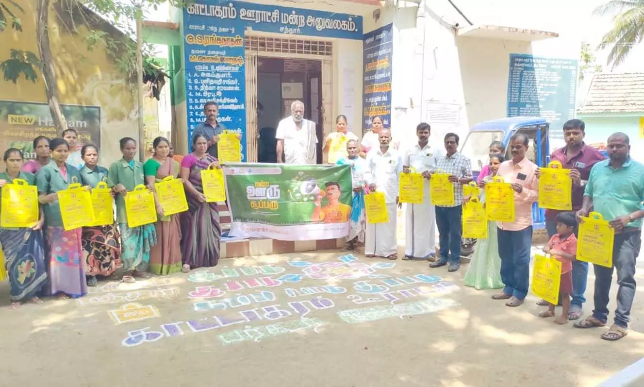 - பொது மக்கள், வணிகர்கள் உள்ளிட்டோருக்கு மஞ்சபை வழங்கி, பிளாஸ்டிக்கை தவிர்ப்போம் என விழிப்புணர்வு உறுதிமொழி எடுத்து கொண்டனர்.