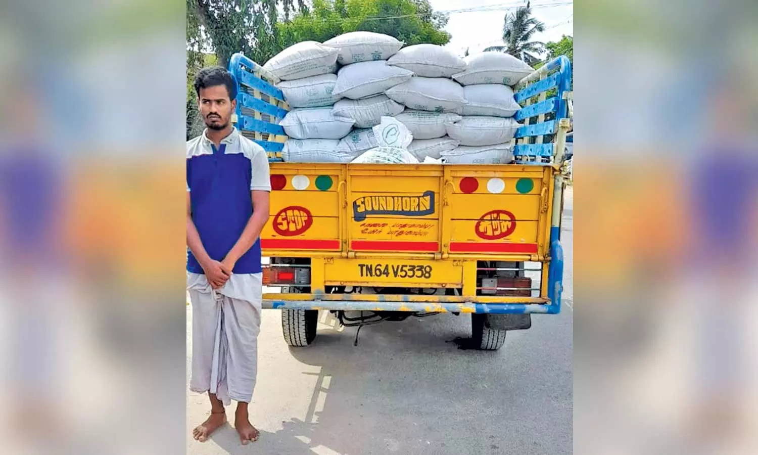 2.3 டன் ரேஷன் அரிசி கடத்திய வாலிபர் கைது; மினிலாரி பறிமுதல்