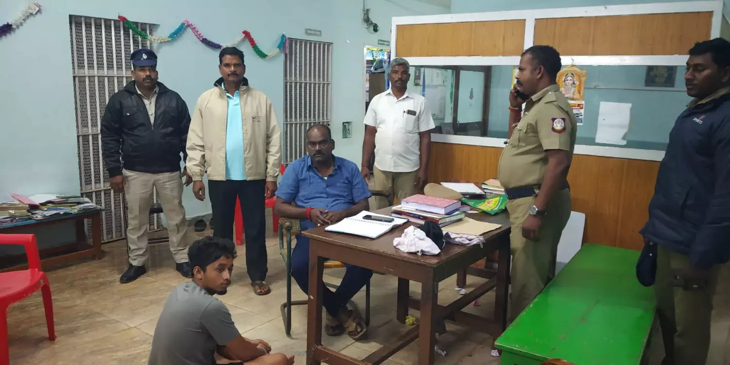 இது தொடர்பான புகாரின் பேரில் முத்தாண்டிக்குப்பம் போலீஸ் இன்ஸ்பெக்டர் ராஜதாமரைபாண்டியன், சப்-இன்ஸ்பெக்டர் வெங்கடேசன் ஆகியோர் வழக்கு பதிவு செய்து அப்பகுதியில் உள்ள சி.சி.டி.வி. கேமராக்களை ஆய்வு செய்தனர். அதன்படி மானடிக்குப்பம் ராஜதுரை (24), முத்தாண்டிக்குப்பம் பிரவின் குமார் (23), வீரசிங்ககுப்பம் செல்வமணி (23) ஆகியோர் இச்சம்பவத்தில் ஈடுபட்டது தெரியவந்தது. அவர்களை கைது செய்த போலீசார் விசாரணை நடத்தி வழக்கு பதிவு செய்து பண்ருட்டிக்கு அழைத்து வந்தனர். அப்போ து பிரவின்குமார் என்ற வாலிபர் தப்பி ஒடிவிட்டார்.