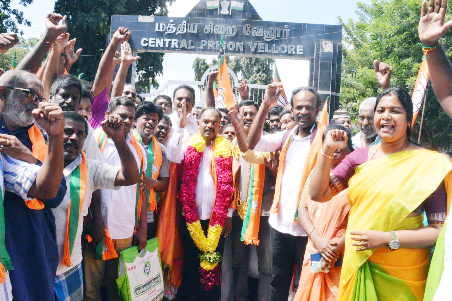 வேலூர் சிறையிலிருந்து ஜாமீனில் வெளியே வந்த பா.ஜ.க.வினர்.