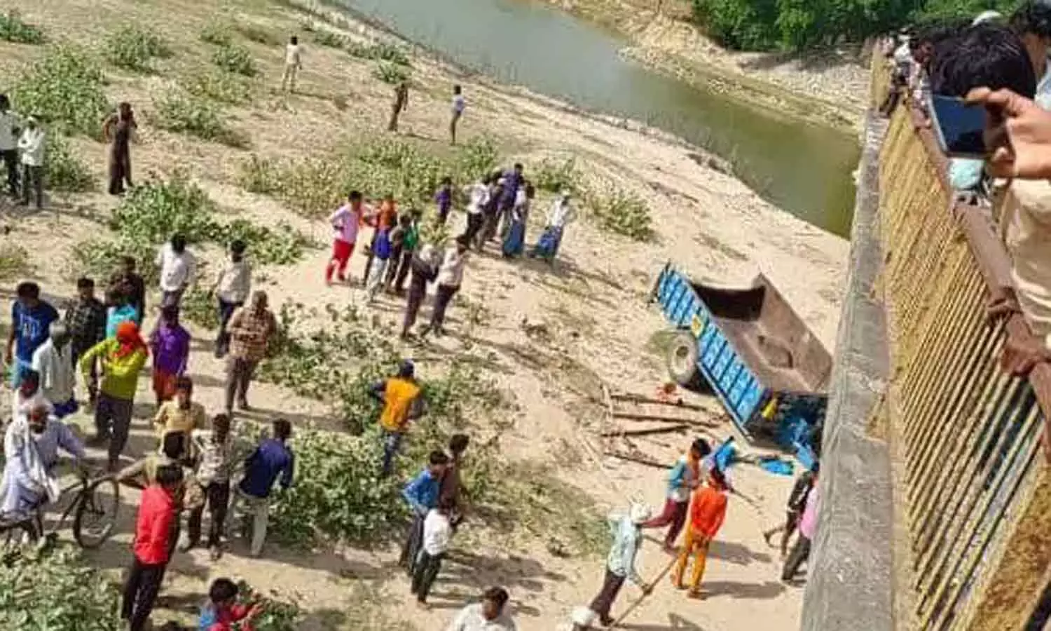இந்நிலையில், டிராக்டர் திடீரென கட்டுப்பாட்டை இழந்து ஓடியது. அதன்பின் தடுப்பு சுவரில் மோதிய டிராக்டர் கர்ரா ஆற்றுக்குள் கவிழ்ந்தது. இந்த விபத்தில் 8 பெண்கள், 2 குழந்தைகள் உள்பட 11 பேர் உயிரிழந்தனர். 20க்கும் மேற்பட்டோர் காயமடைந்தனர்.