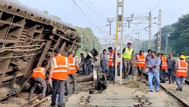 ஆந்திரா ராஜமுந்திரியில் சென்னையில் இருந்து சென்ற சரக்கு ரெயில் தடம் புரண்டது- 9 பயணிகள் ரெயில் ரத்து