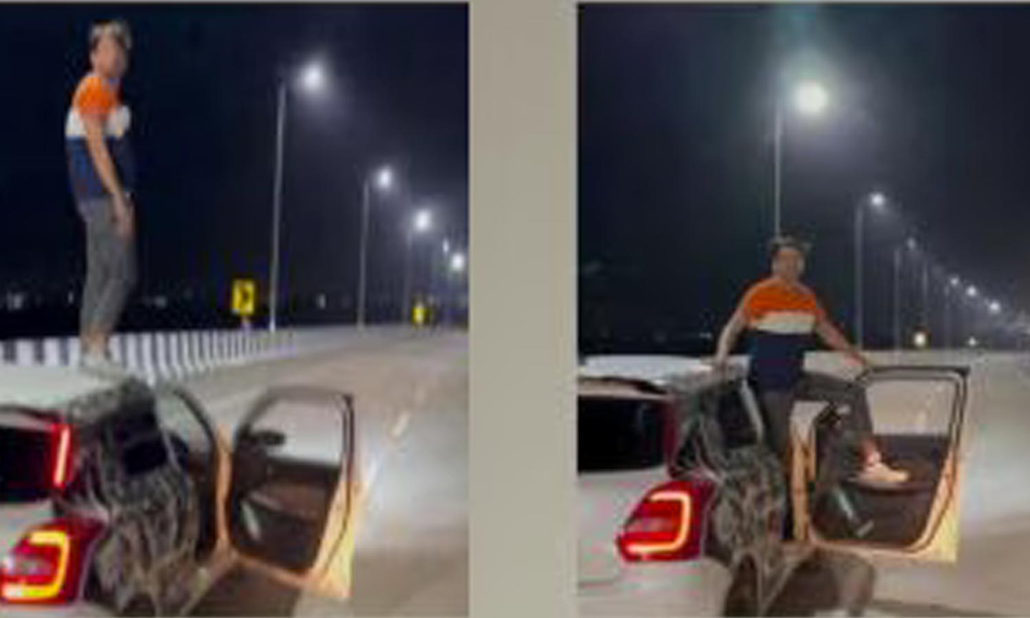 ஓடும் காரில் ஆபத்தான சாகசம் செய்த வாலிபர்- வீடியோ வைரல்