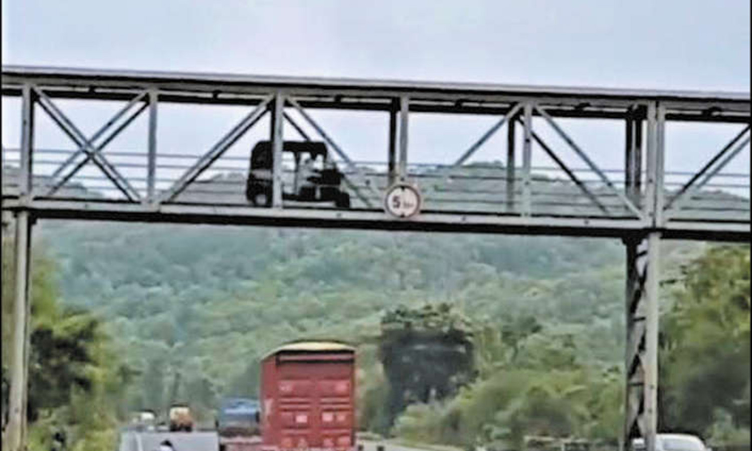 நெடுஞ்சாலை நடைமேம்பாலத்தில் செல்லும் ஆட்டோ.