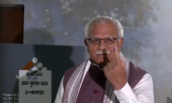 வாக்குப்பதிவு தொடங்கியதும் மத்திய மந்திரி மனோகர் லால் கட்டார் தனது வாக்கை பதிவு செய்தார்.
