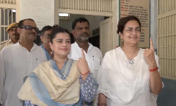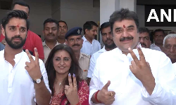 பா.ஜ.க. எம்.பி. கிரண் சவுத்ரி தனது மகளும், தோஷம் தொகுதி வேட்பாளருமான ஸ்ருதி சவுத்ரியுடன் வாக்கு செலுத்தினார்.