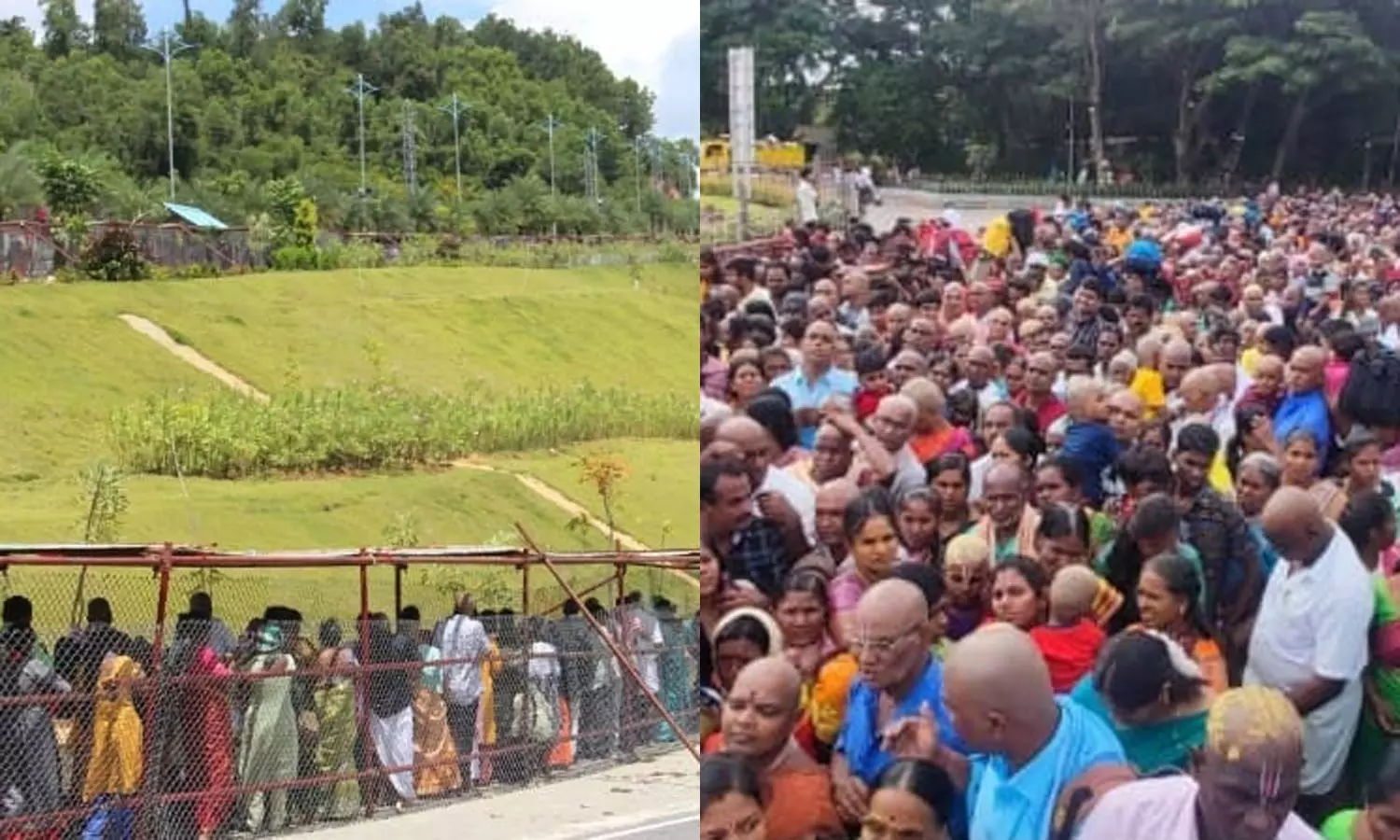 வைகுந்தம் க்யூ காம்ப்ளக்ஸ்சில் இருந்து சுமார் 5 கிலோமீட்டருக்கு மேல் பக்தர்கள் காத்திருக்கின்றனர். சாமி தரிசனத்திற்கு 48 மணி நேரம் ஆகிறது.