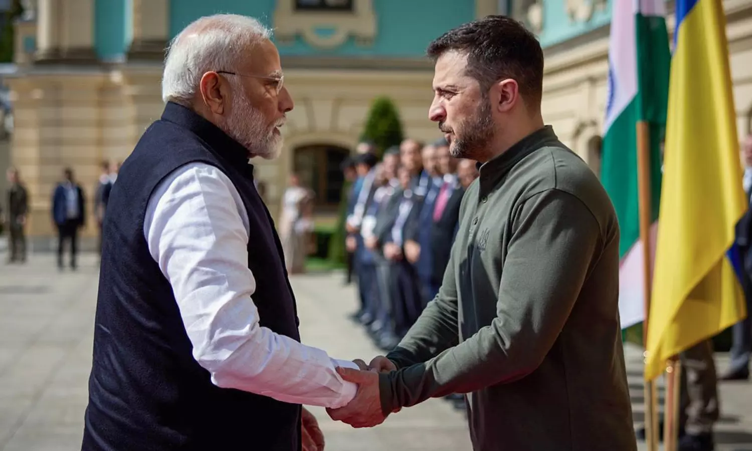 அரசு முறை பயணமாக பிரதமர் மோடி உக்ரைன் சென்றார். அங்கு, உக்ரைன் தலைநகர் கீவ் பகுதியில் உள்ள ஜனாதிபதி மாளிகையில் அதிபர் ஜெலன்ஸ்கியுடன் பிரதமர் மோடி சந்தித்தார்.