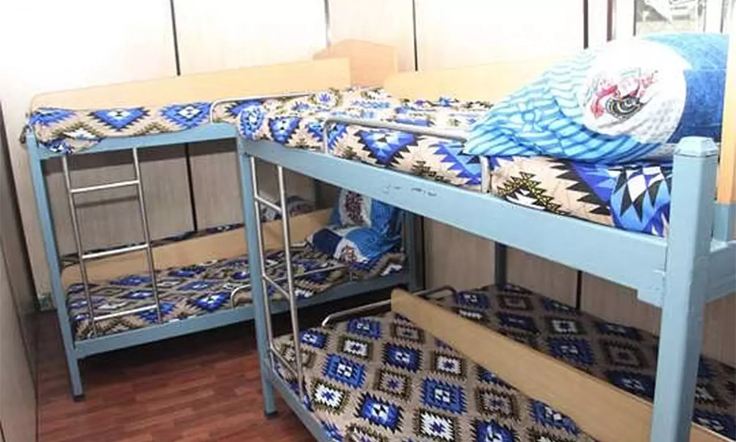 கன்டெய்னர் அறையில் உள்ள படுக்கை வசதி.