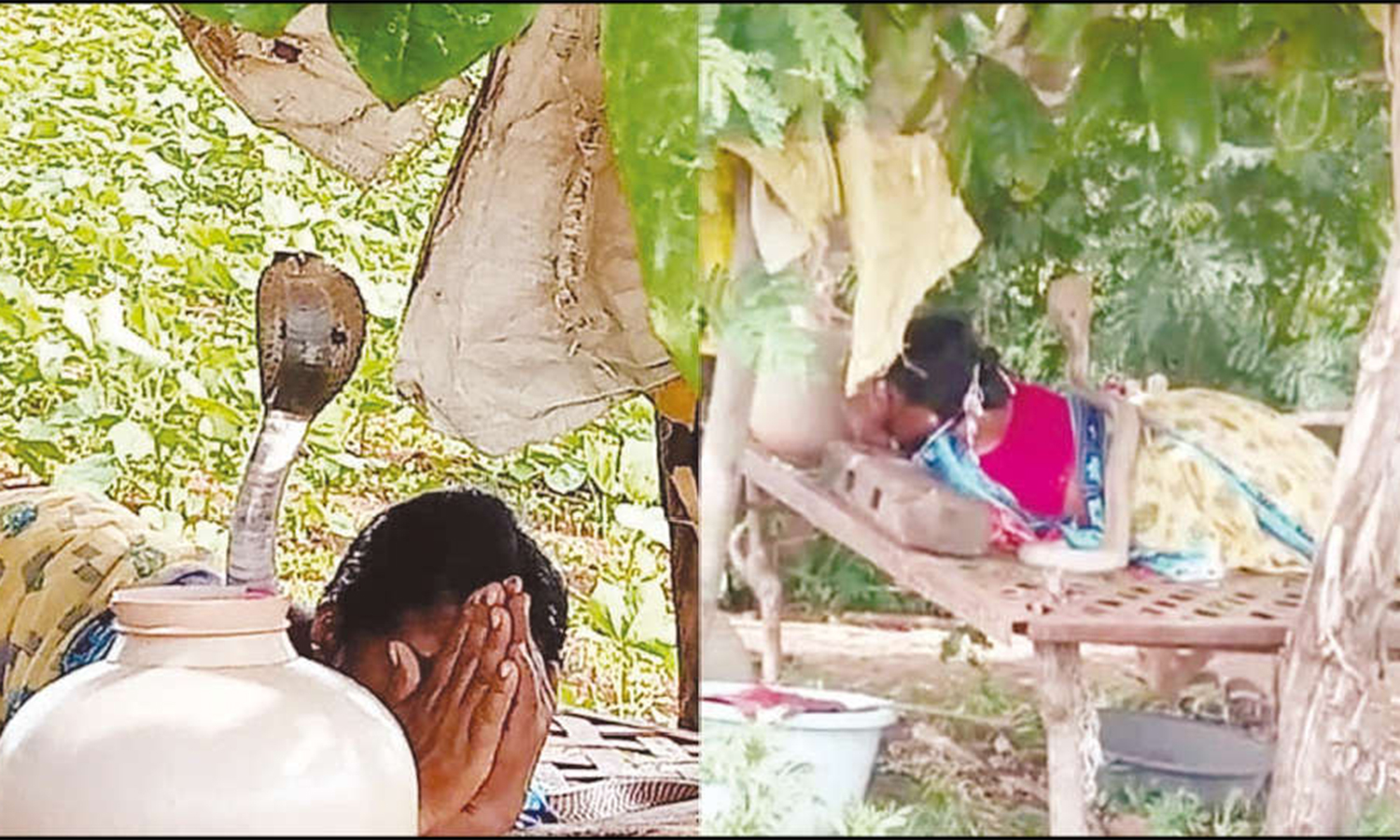 கர்நாடக மாநிலம் கலபுரகி மாவட்டம் அப்சல்புரா தாலுகா மல்லாபாத் கிராமத்தில் வசித்து வருபவர் பாகம்மா. இவர் அப்பகுதியில் விவசாய கூலித்தொழில் செய்து வருகிறார். நேற்று காலையில் இவர் வேலை செய்த களைப்பில் விவசாய நிலம் அருகே உள்ள மரத்தின் கீழ் கட்டிலில் படுத்து இருந்தார்.