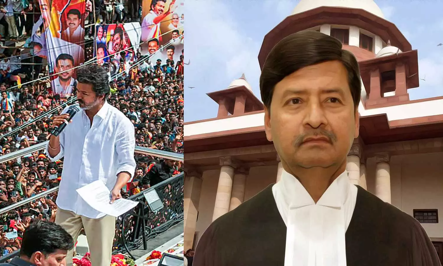 இந்த மனு மீதான விசாரணை சுப்ரீம் கோர்ட்டில் நடைபெற்றது. இந்த மனு, நீதிபதிகள் மகேஸ்வரி, அஞ்சாரியா ஆகியோர் கொண்ட அமர்வில் விசாரணைக்கு வந்தது. அப்போது தமிழக போலீசை மட்டும் கொண்ட சிறப்பு புலனாய்வு குழு மீது எங்களுக்கு நம்பிக்கை இல்லை. எனவே ஓய்வு பெற்ற நீதிபதி தலைமையில் விசாரணை குழு அமைக்கப்பட வேண்டும் என்று தவெக தரப்பு வலியுறுத்தியது.