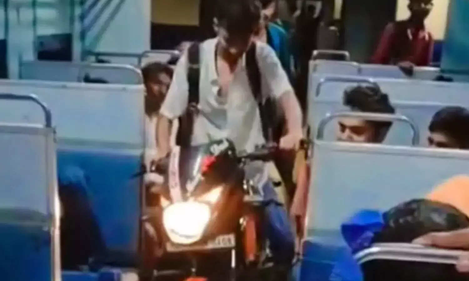 இன்ஸ்டாகிராமில் பீகாரின் சக்தி என்ற தலைப்பில் பகிரப்பட்ட அந்த வீடியோவில், ஒரு வாலிபர் பைக்கில் அமர்ந்து கொண்டு ஓட்டுவது போல காட்சிகள் உள்ளது. அதனை ரெயில் பெட்டியில் இருந்த பயணிகள் பார்த்து அதிர்ச்சி அடைகின்றனர். இந்த சம்பவம் பாட்னாவில் நடைபெற்றதாக கூறப்படுகிறது.