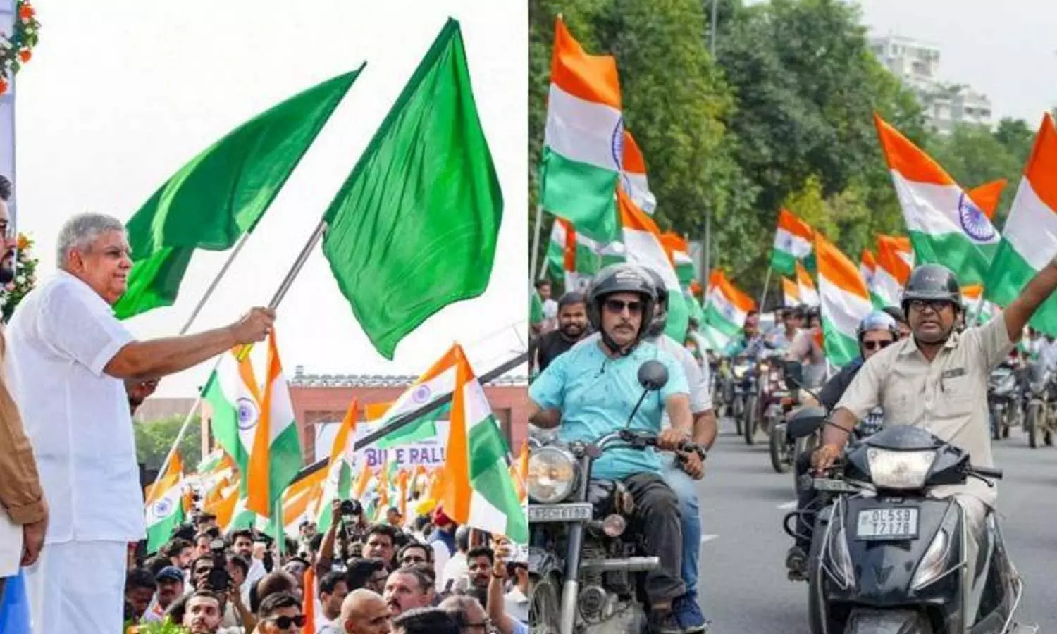சுதந்திர தினவிழா கொண்டாட்டத்தின் ஒரு பகுதியாக இன்று காலை டெல்லியில் பாரதீயஜனதா சார்பில் மோட்டார் சைக்கிள் பேரணி நடத்தபட்டது. இதில் பா.ஜனதா தொண்டர்கள் மற்றும் பொதுமக்கள் தேசிய கொடியுடன் பங்கேற்றனர். பிரகதி மைதானத்தில் தொடங்கிய இந்த பேரணி இந்தியா கேட் பகுதியில் முடிவடைந்தது. இந்த பேரணியை துணை ஜனாதிபதி ஜெகதீப் தன்கர் தொடங்கி வைத்தார்.இதில் மத்திய மந்திரிகள் , எம்.பி.க்கள் கலந்து கொண்டனர்.