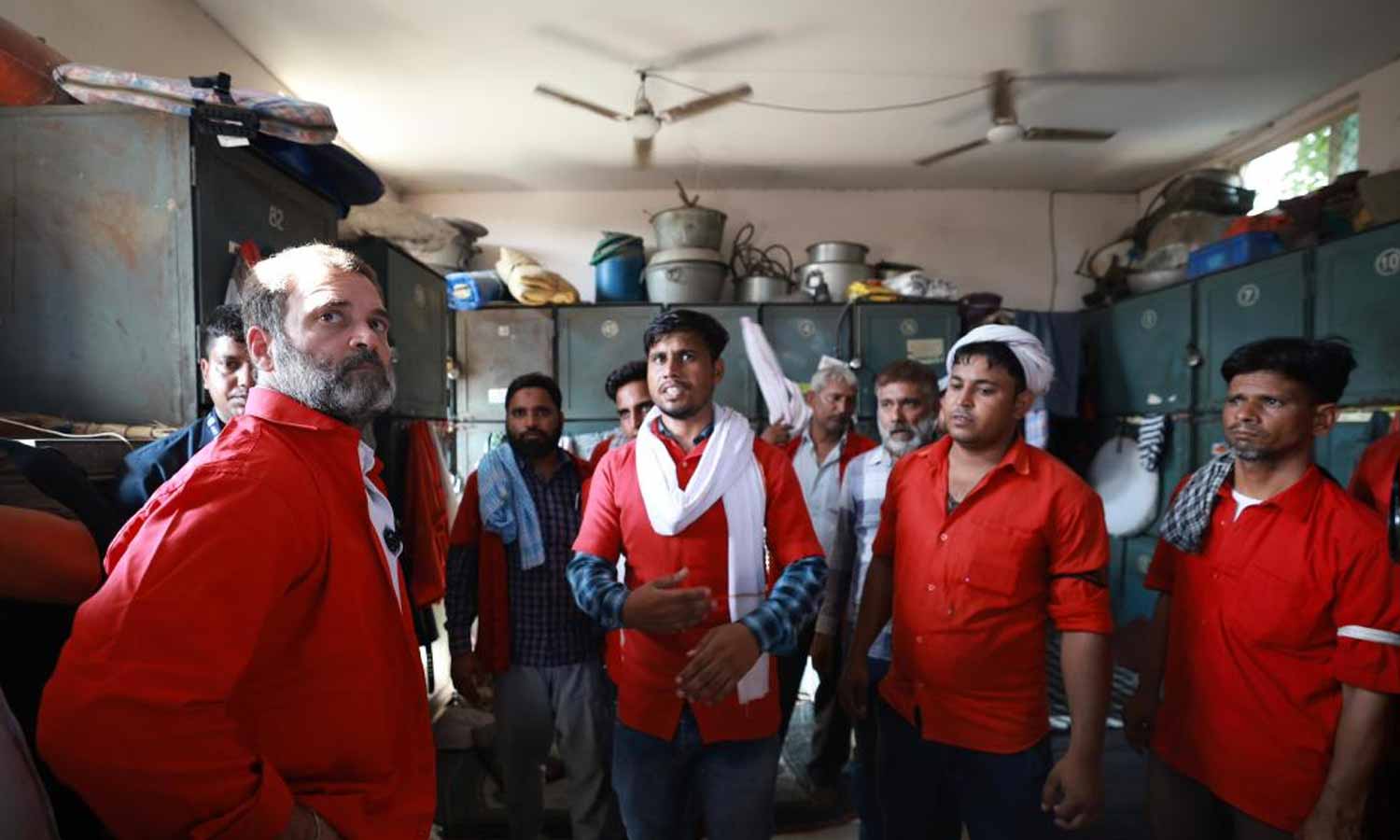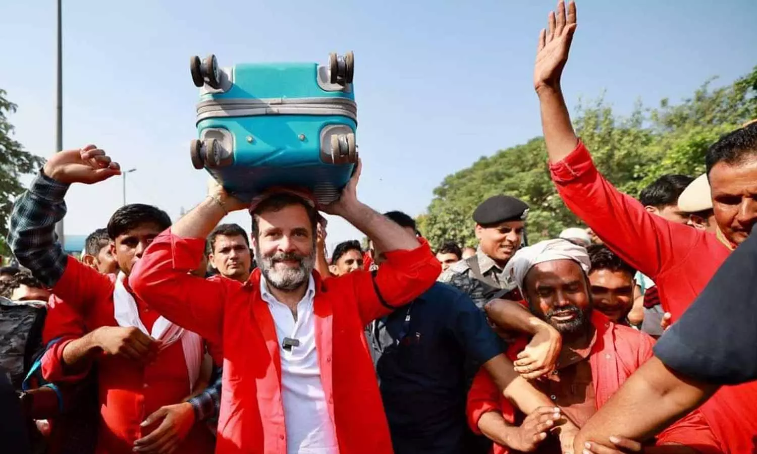 அந்த வகையில் இன்று ராகுல் காந்தி டெல்லியில் உள்ள ஆனந்த் விஹார் ரெயில் நிலையம் சென்றார். அங்கு அவர் சுமைதூக்கும் தொழிலாளர்களுடன் (porters) உரையாடினார். பின்னர், சுமைதூக்கும் தொழிலாளர்கள் அணியும் சிகப்பு நிற சட்டையை அணிந்து, கையில் சுமையையும் தூக்கினார்.