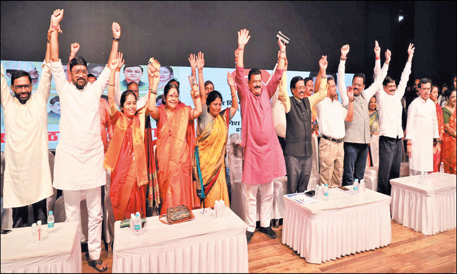 கூட்டத்தில் கலந்து கொண்ட உத்தவ் தாக்கரே அணி தலைவர்களை படத்தில் காணலாம்.
