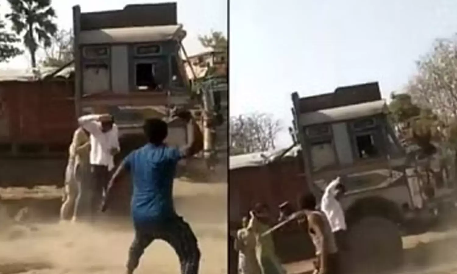 மணல் மாபியா கும்பல் மற்றும் அங்கிருந்த பொதுமக்கள் ஒட்டுமொத்தமாக சேர்ந்து அதிகாரிகளை தாக்கியது.