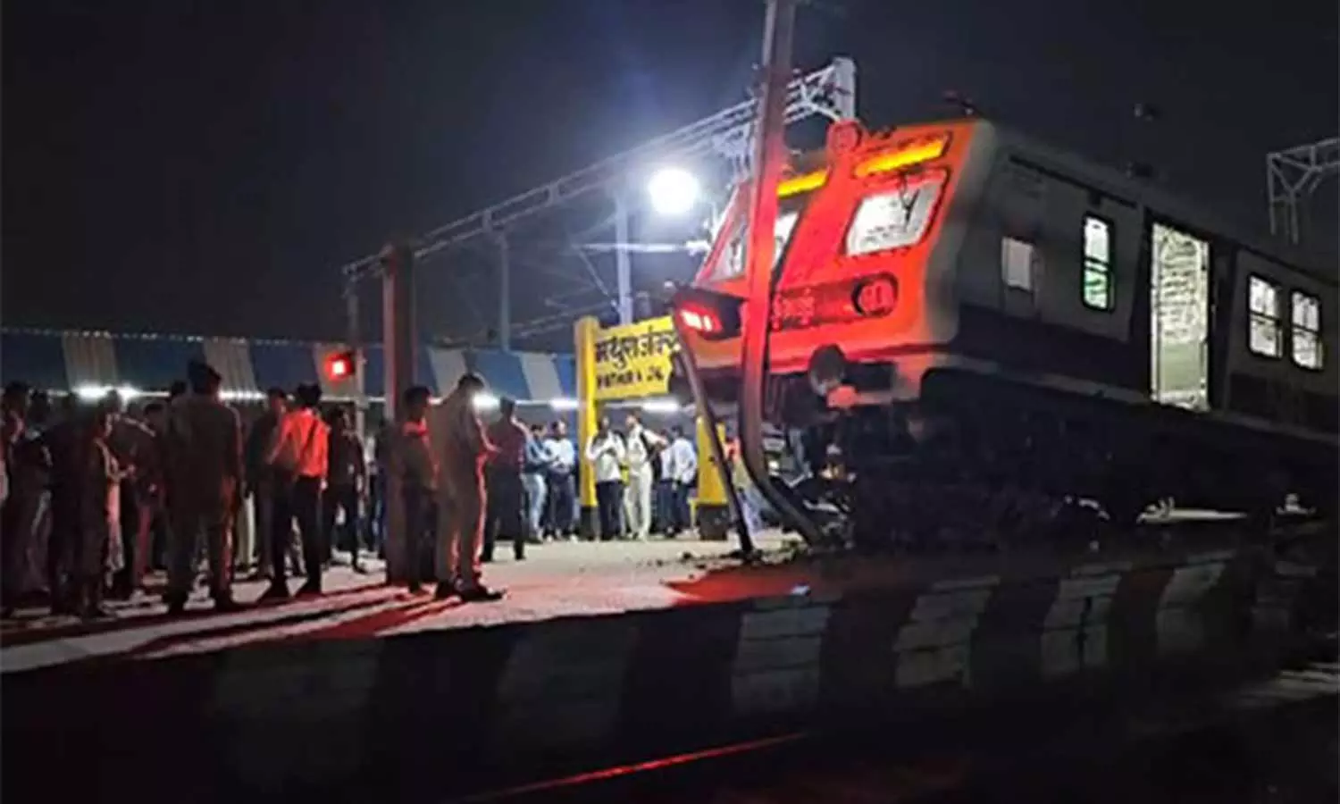உத்தரபிரதேச மாநிலம் மதுரா ரெயில் நிலையத்தில் மின்சார ரெயில் பிளாட்பாரத்தில் ஏறி விபத்துக்குள்ளானது.