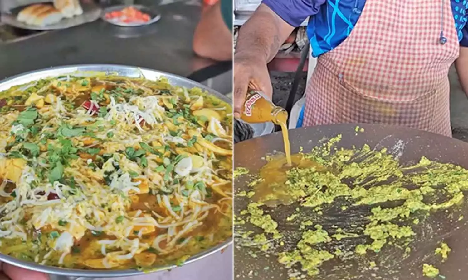அதில் தெருவோர வியாபாரி ஒருவர் ஒரு எண்ணெய் சட்டியில் வறுத்த முட்டைகள் எடுக்கிறார். பின்னர் இரண்டு முட்டையின் மஞ்சள் கருவை எடுத்து மிளகாய் மற்றும் வெங்காயத்தை தவாயில் சேர்த்து பிசைய தொடங்குகிறார்.