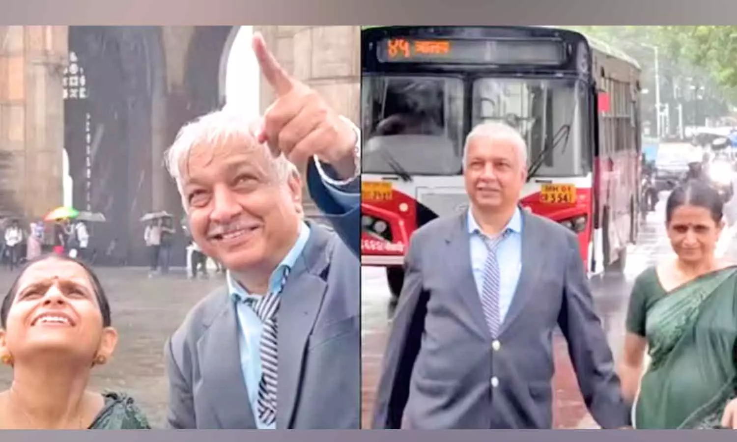 மும்பையில் மழையில் நனைந்தபடி ஆடிய முதிய தம்பதியின் வீடியோ