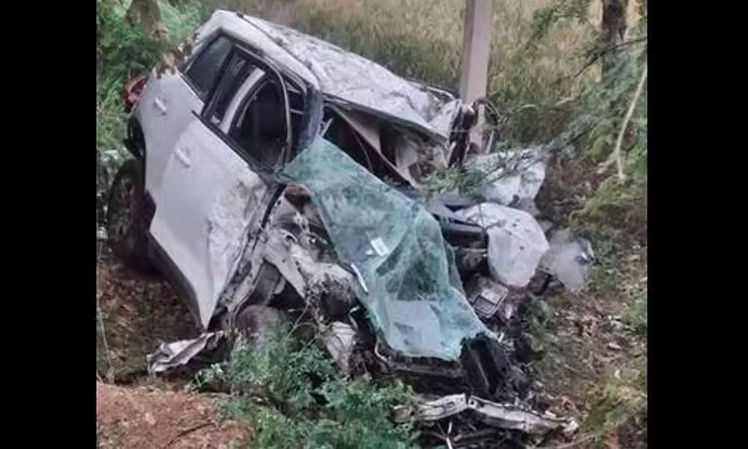 அரோகா- அடம்பூர் சாலையில் கிஷன்கர் பகுதியில் வந்தபோது கட்டுப்பாட்டை இழந்த கார் சாலையோர மரத்தில் மோதி விபத்துக்குள்ளானது.