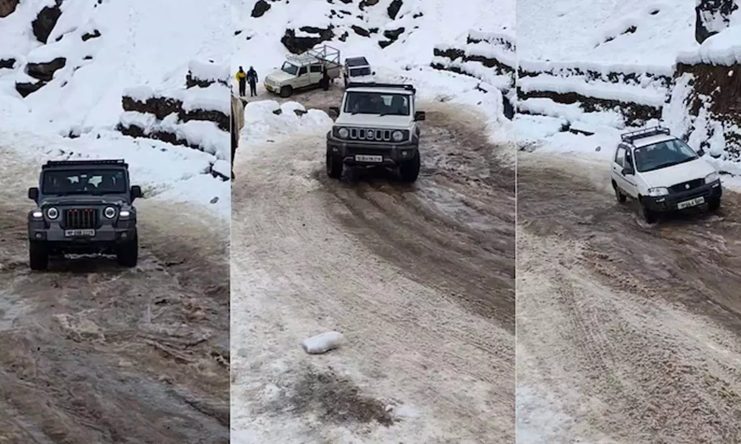 பனி படர்ந்த மலை பாதையில் ஆல்டோ செய்த தரமான சம்பவம் - வீடியோ வைரல்