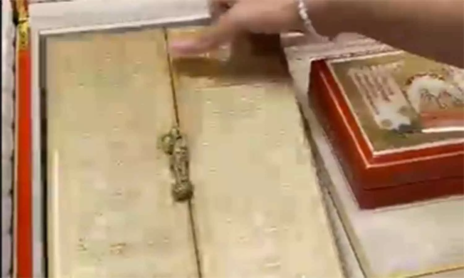ஆடம்பரமான அழைப்பிதழ், ஒரு கோவிலை ஒத்த ஒரு பெட்டி, அதை திறந்த உடன் உள்ளே விவரங்கள் மற்றும் தெய்வீக உருவங்களுடன் அலங்கரிக்கப்பட்டுள்ளது. மேலும் அழைப்பிதழை திறந்தவுடன் அதில் மங்களகர இசை ஒலிக்கிறது.