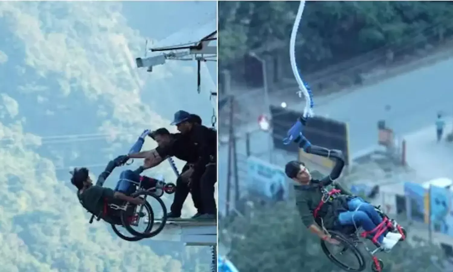 உத்தரகாண்ட் மாநிலம் ரிஷிகேசில் உள்ள இந்தியாவிலேயே மிக உயரமான பங்கி ஜம்பிங் சாகசம் செய்யும் தளத்தில் இந்த சாகசம் நிகழ்த்தப்பட்டுள்ளது. அபைய் டோக்ரா என்ற வாலிபர் இந்த சாகசத்தை நிகழ்த்தி உள்ளார். அவரை 117அடி உயரத்தில் இருந்து குதிக்க வைக்கும் முன்பு அவரது வீல் சேருடன் சேர்த்து அவருக்கும் உரிய பாதுகாப்பு நடவடிக்கைகளை மேற்கொள்ளப்படுகிறது.
