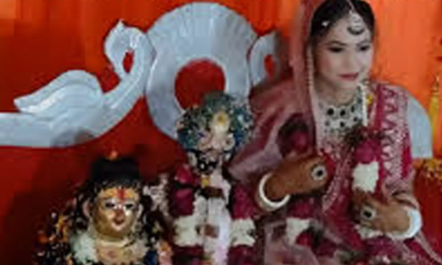இந்நிலையில், உத்தர பிரதேசத்தில் கிருஷ்ணர்மீது கொண்ட அதீத பக்தியால் உறவினர்கள் முன் அவரது சிலைக்கு மாலை அணிவித்து திருமணம் செய்துகொண்டார் பிங்கி என்ற இளம்பெண்.